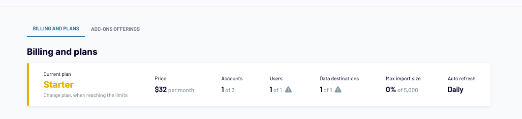 - The minimum data refresh interval is applied based on the selected plan (e.g. daily in the Starter plan, 15-min in Business)