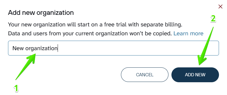 💁 Free-trial organizations cannot create new organizations. If you only have a trial org, the Add organization option will be disabled.