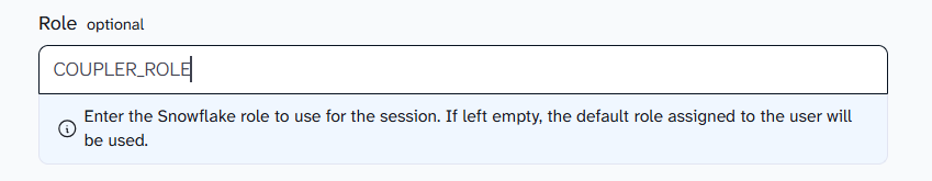 -- Create a specific warehouse for Coupler.io CREATE WAREHOUSE coupler_warehouse WAREHOUSE_SIZE = XSMALL AUTO_SUSPEND = 30; -- Create a specific user for the Coupler.io (service one, will not work for user/pass method) CREATE USER IF NOT EXISTS "coupler_service_user" LOGIN_NAME="coupler_service_user" TYPE = service; -- Create dedicated role CREATE ROLE coupler_io_role; -- Grant warehouse usage GRANT USAGE ON WAREHOUSE coupler_warehouse TO ROLE coupler_io_role; -- Option A: Allow database creation (more flexible, allows Coupler to create new databases) GRANT CREATE DATABASE ON ACCOUNT TO ROLE coupler_io_role; -- Option B: Restrict to specific database (more secure, access limited to my_database) GRANT USAGE ON DATABASE my_database TO ROLE coupler_io_role; GRANT CREATE SCHEMA ON DATABASE my_database TO ROLE coupler_io_role; GRANT ALL ON ALL SCHEMAS IN DATABASE my_database TO ROLE coupler_io_role; GRANT ALL ON ALL TABLES IN DATABASE my_database TO ROLE coupler_io_role; GRANT ALL ON FUTURE TABLES IN DATABASE my_database TO ROLE coupler_io_role; -- Assign to user GRANT ROLE coupler_io_role TO USER "coupler_service_user";