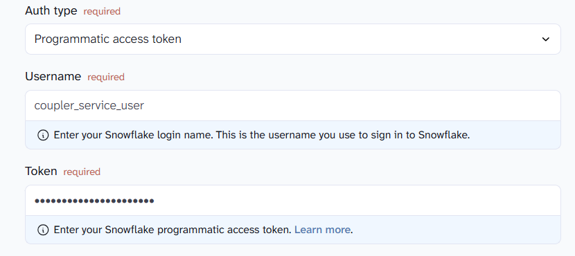Password authentication is being deprecated by Snowflake and will be removed later this year. We recommend using Programmatic access token (PAT) authentication instead.
